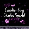 A very pretty embroidered Cavalier King Charles Spaniel tshirt is perfect for the dog lover who is owned by this petite breed. On the left chest area is stitched, “Cavalier King Charles Spaniel Lover,” with elegant scrolling swirls with dog bones and a paw print. This design looks beautiful in a variety of color combinations – write your color theme in the personalization box or be surprised with what we choose. Rhinestones are also available for an additional fee. See the product photos for a rhinestone example. Color used will be complementary to the design.